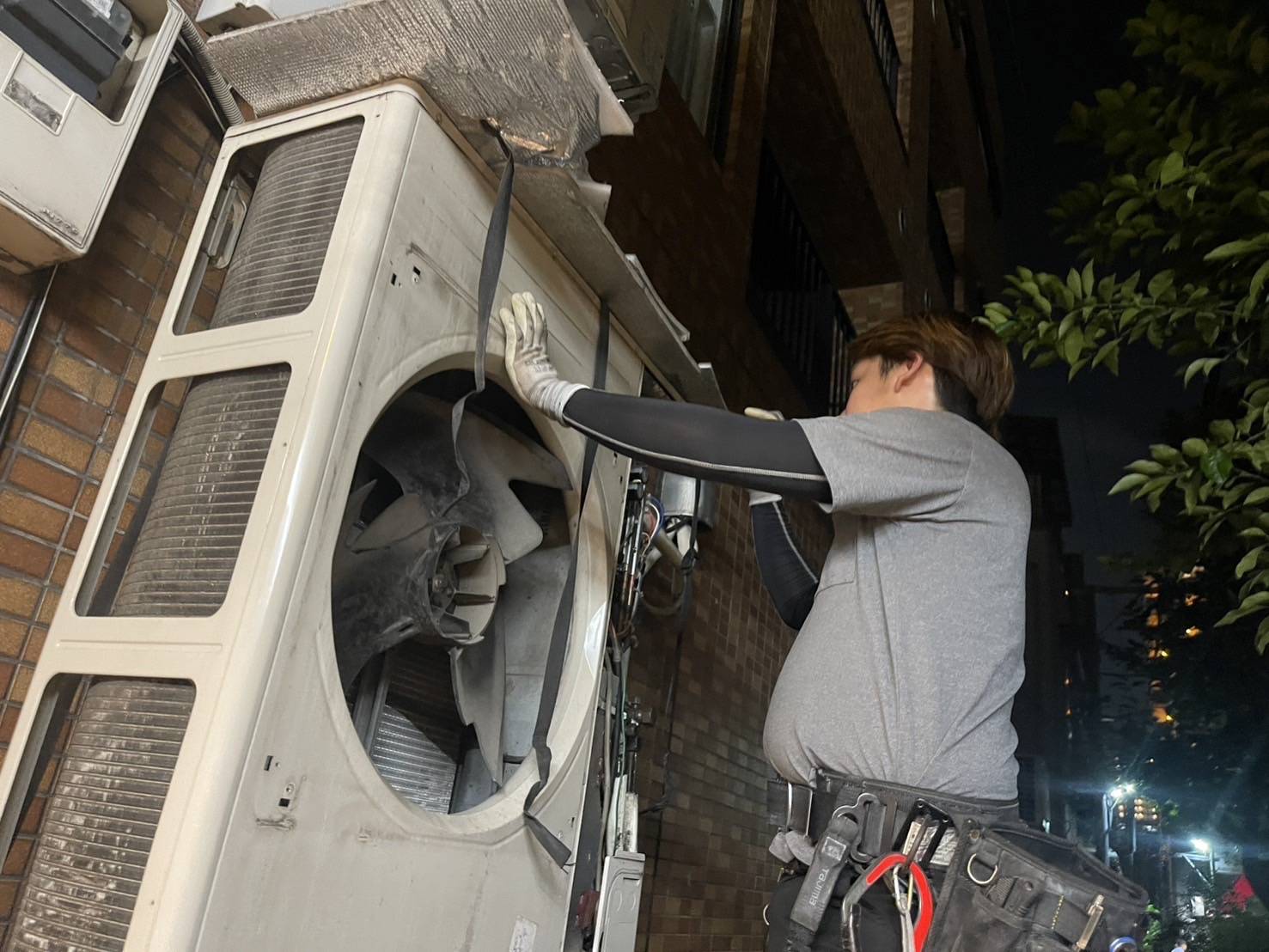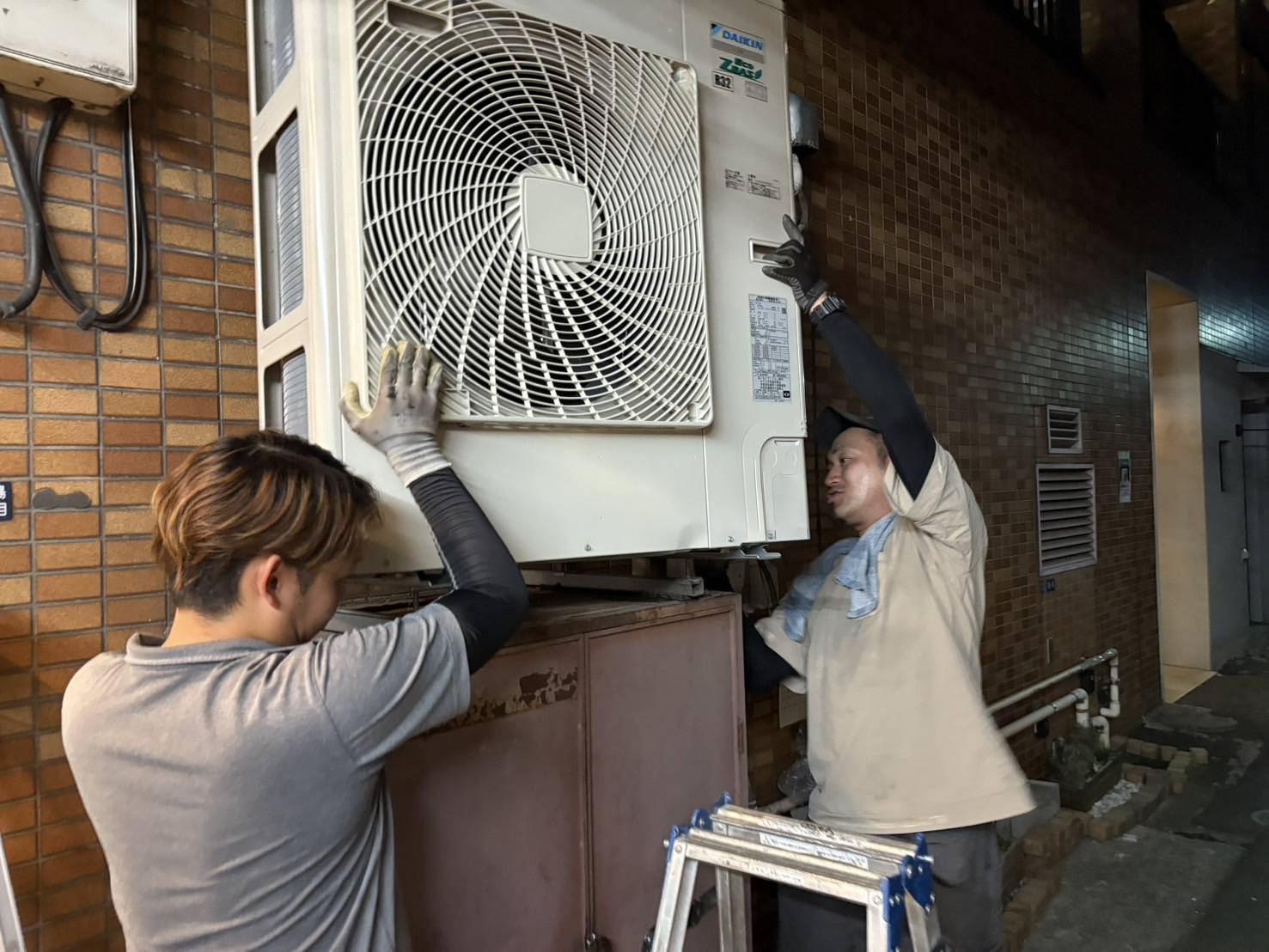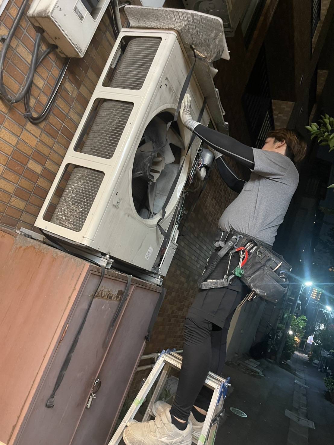 お世話になっております。 本日は、東京都中央区にあるもんじゃでおなじみの月島で、某もんじゃ屋様のエアコン内機外機入換工事を行った際の事例となります。