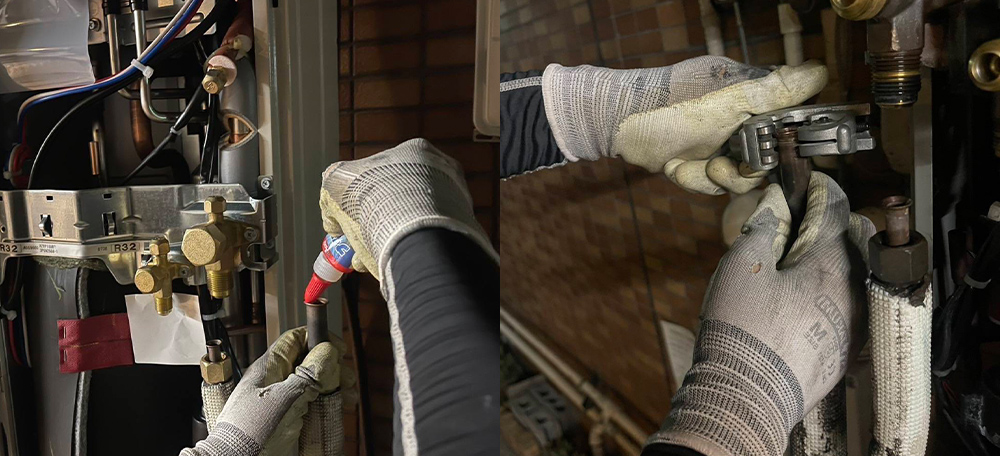 ダクトの継ぎ目を溶接で接合し、施工を行います。